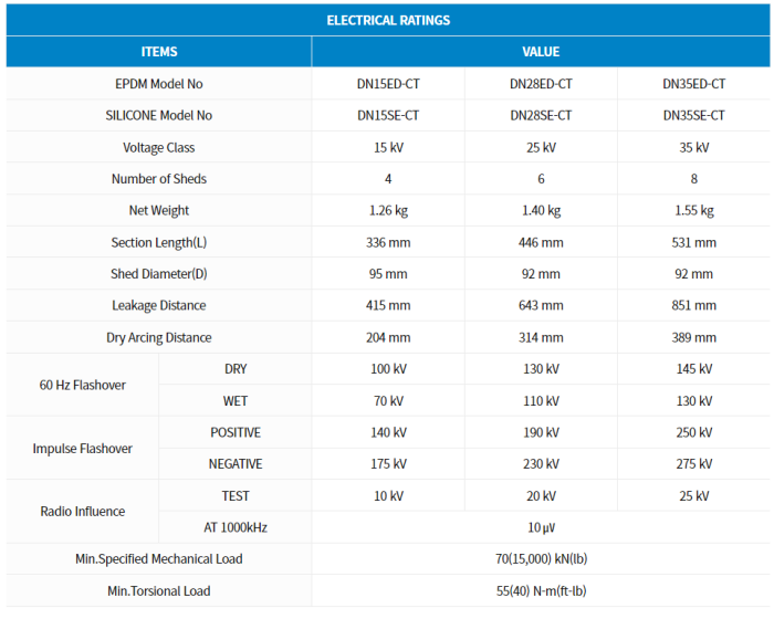 가공 배전선로에 사용하는 폴리머(EPDM 고무) 현수애자